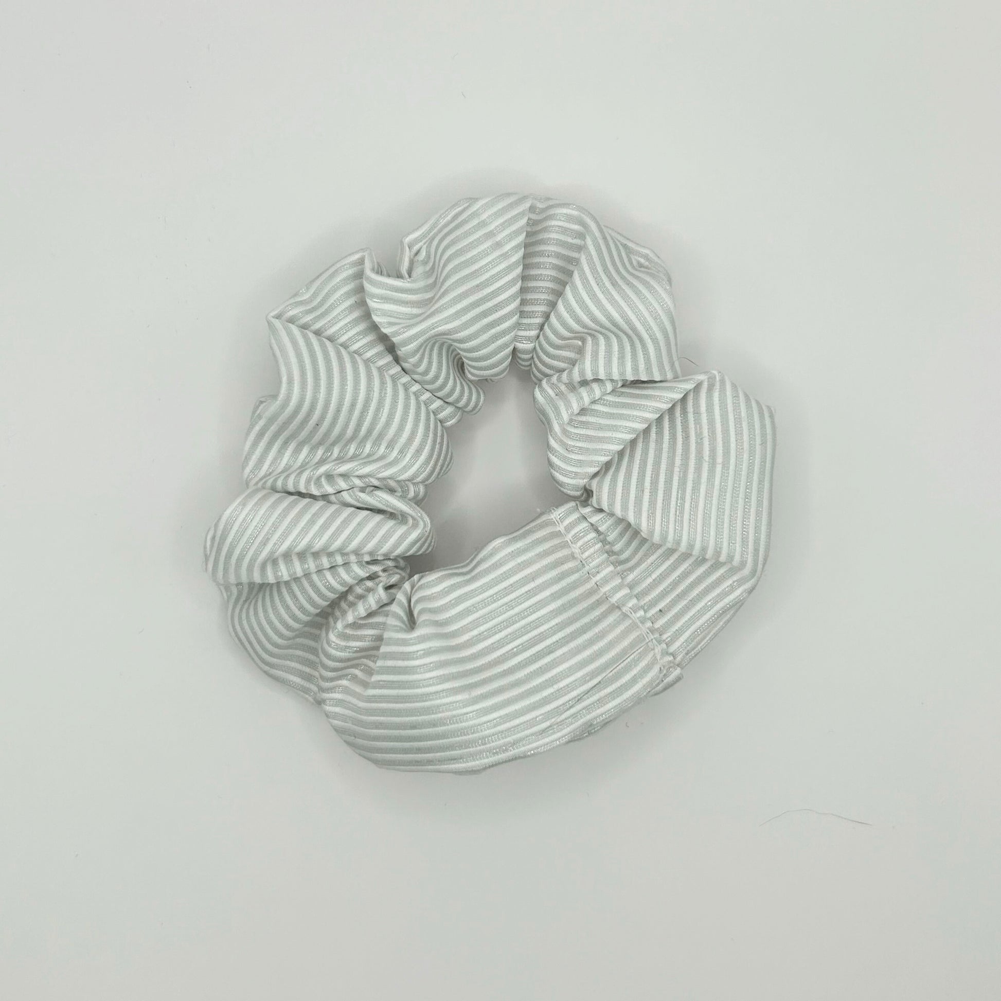 Dit is een mini scrunchie in de kleur Nancy. Een gestreepte witte stof