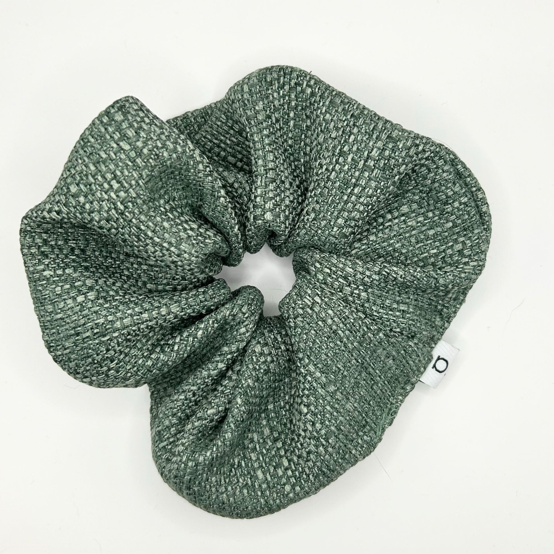 Dit is een handmade scrunchie in de kleur Jaz. Een groene geweven stof.