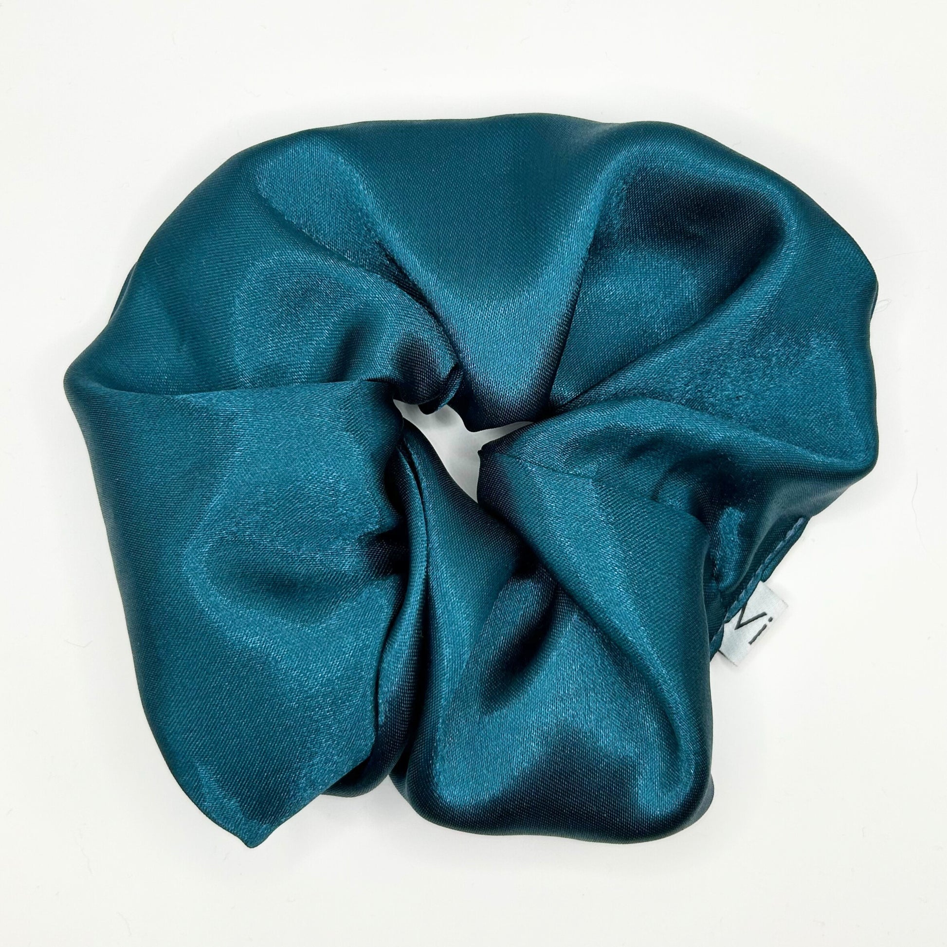 Dit is een handmade scrunchie in de kleur Stacey. Een petrol satijn.